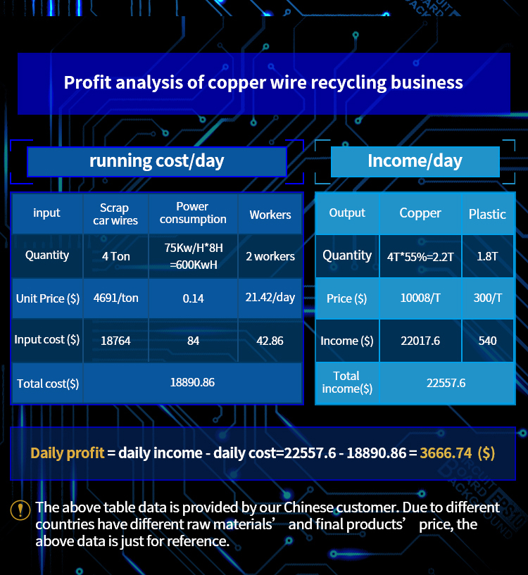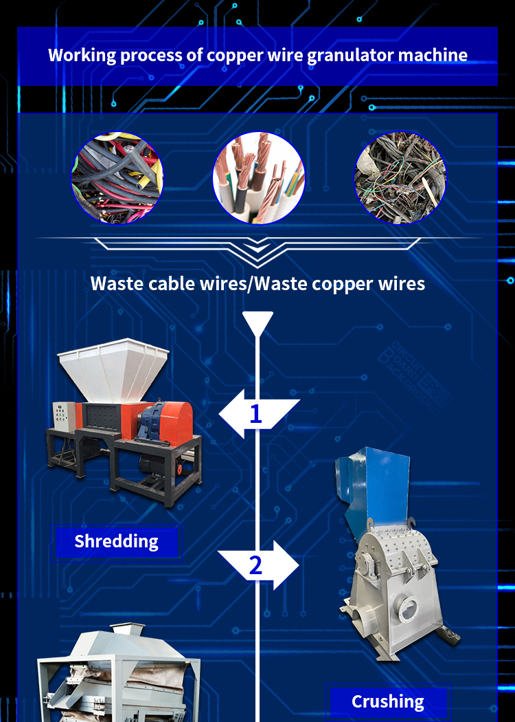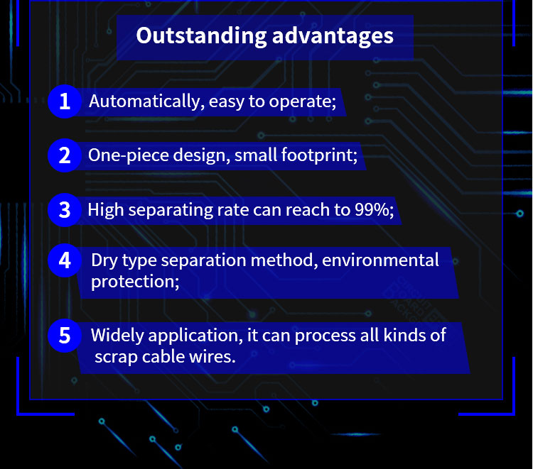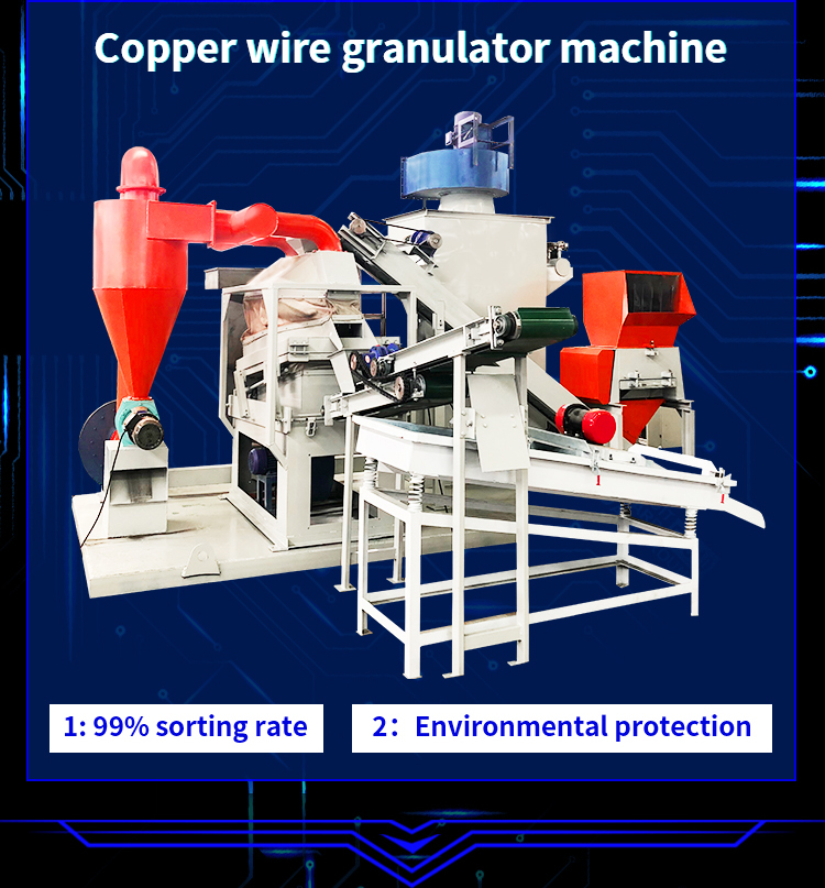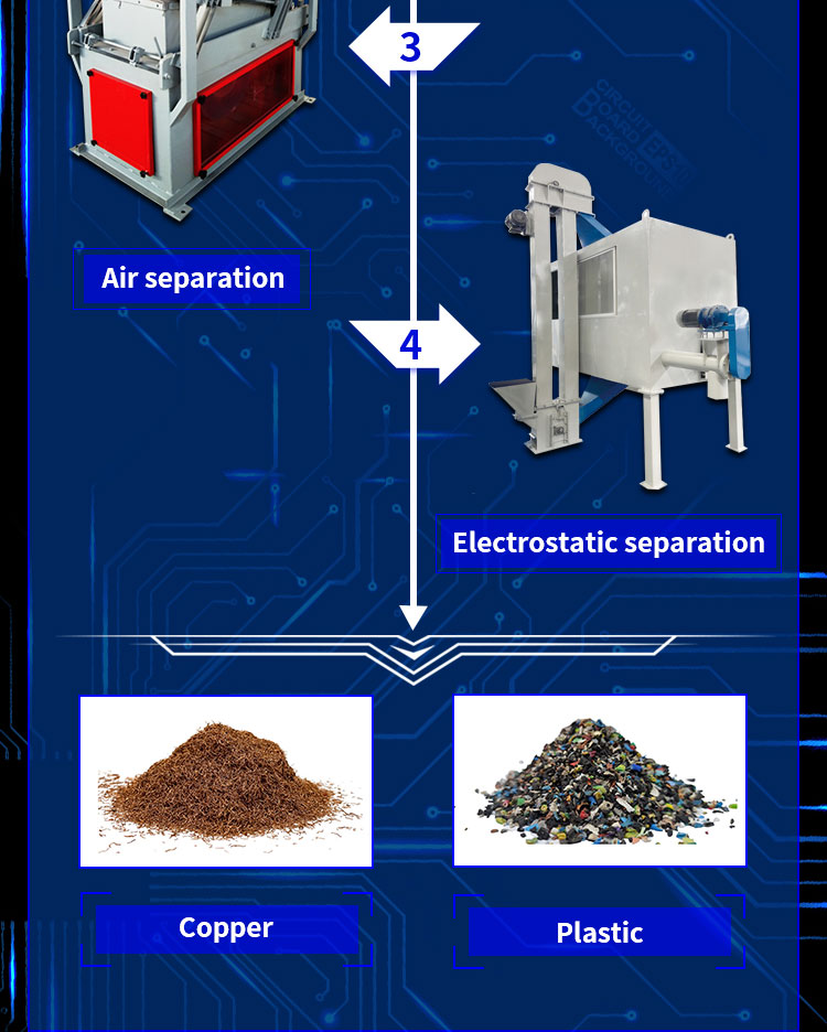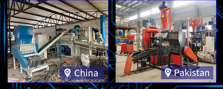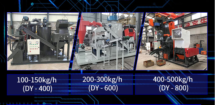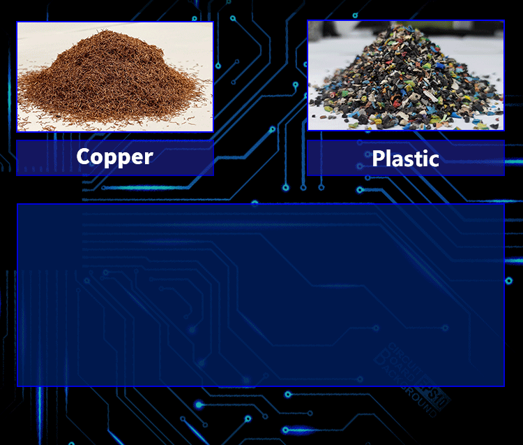 Our main business: Solid waste, E waste recycling and metal plastic separation equipment, including scrap wires and cables recycling machine, PCB circuit boards recycling machine, aluminum plastic separation machine, copper aluminum radiator recycling machine and other stand-alone equipment.