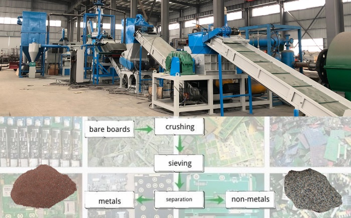 In fact, the most valuable part in recycling e waste is PCB board, which contains Cu, Al, Au, Pb, Sn, and other rare metals, and resin fiber. So Doing Company designs PCB board recycling machine to separate metals and resin fiber without pollution.
